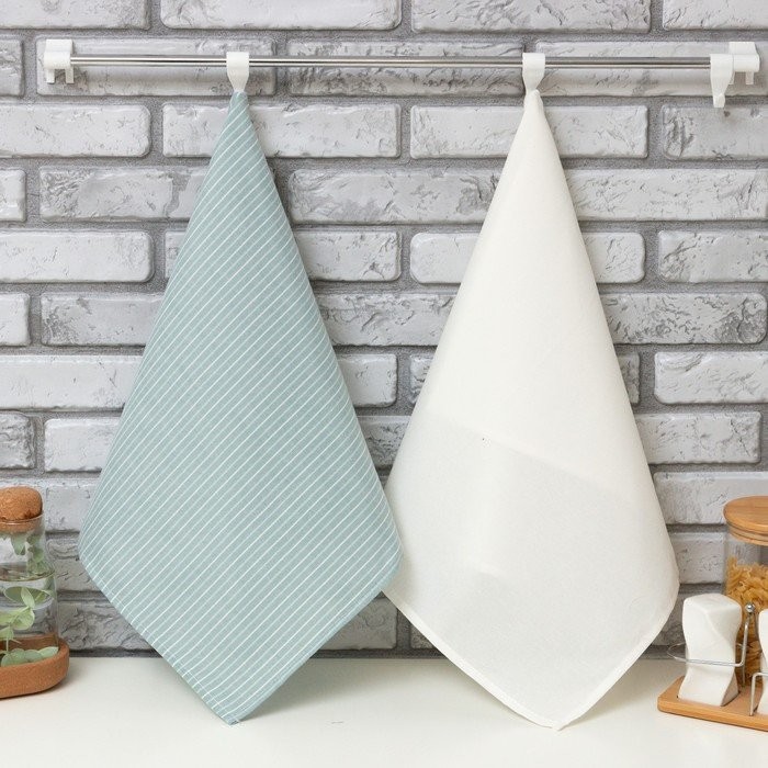 Набор кухонных полотенец Доляна «Полосы», 40х70см- 2шт, зеленый, 50%п/э, 50%хл
