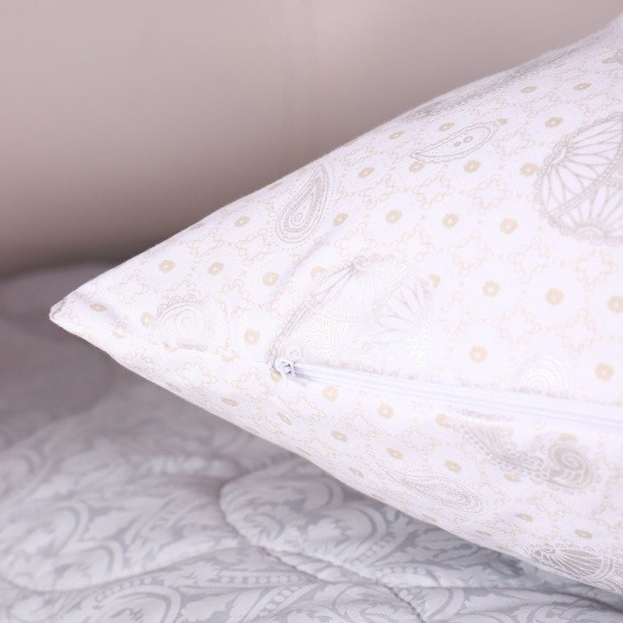 Нижняя наволочка 50х70см на молнии Огурцы серебро №2 (белый), тик 90г/м, пэ70%,хл30%