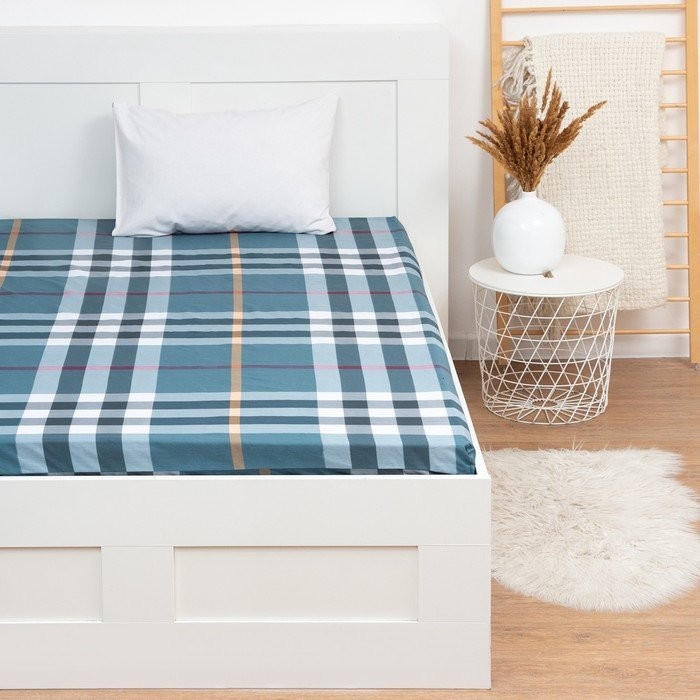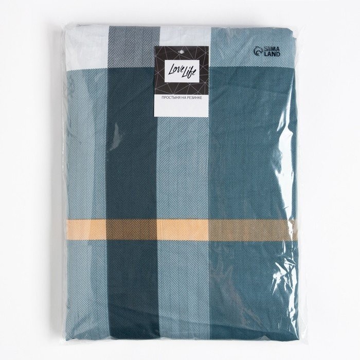Простыня на резинке LoveLife 160*200*25см, «Клетка», 100% хлопок, сатин, 125г/м²