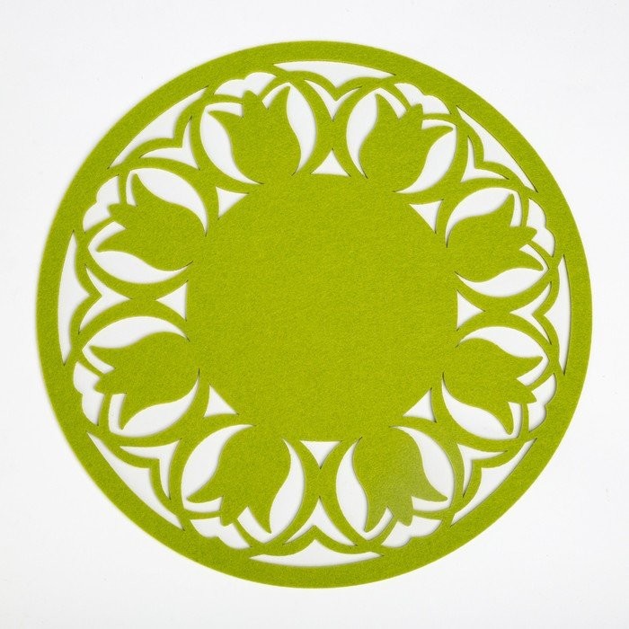 Салфетка декоративная Доляна"Тюльпаны» цвет зеленый, d 30 см, 100% п/э, фетр