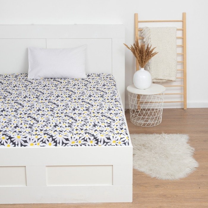 Простыня на резинке LoveLife 160*200*25см, «Ромашки», 100% хлопок, сатин, 125г/м²