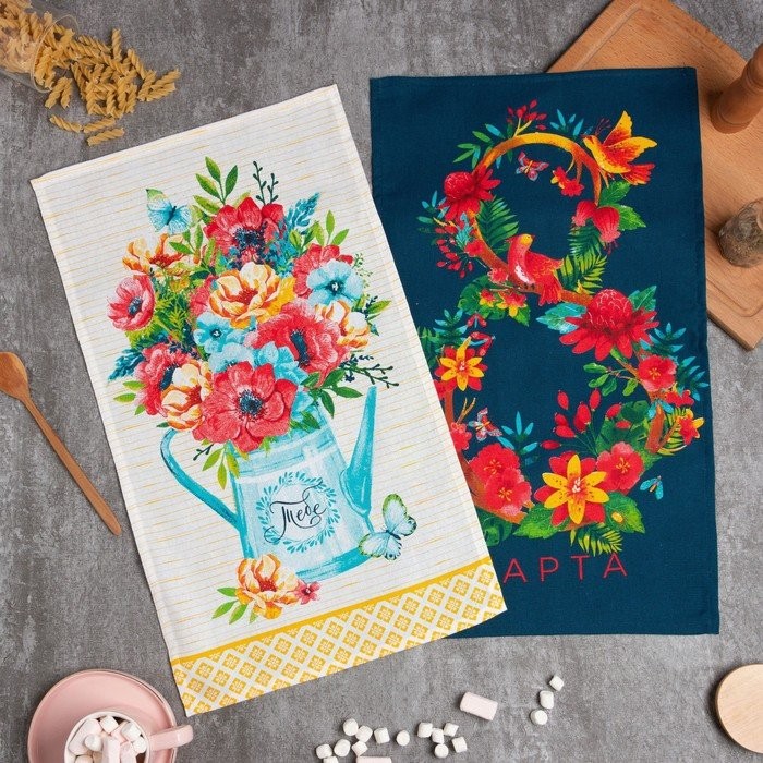 Набор кухонных полотенец Доляна «8 Марта», 35х60см-2шт, 100% хл