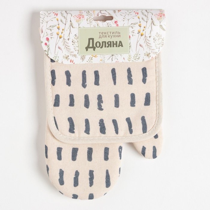 Кухонный набор (2 предмета) Доляна «Тенденция», цвет серый, прихватка 17×17 см, варежка 26×16 см, 100% п/э