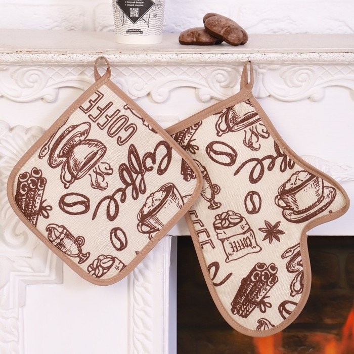 Набор кухонный Эспрессо 220 (варежка+прихватка), бежевый, хл, рогожка