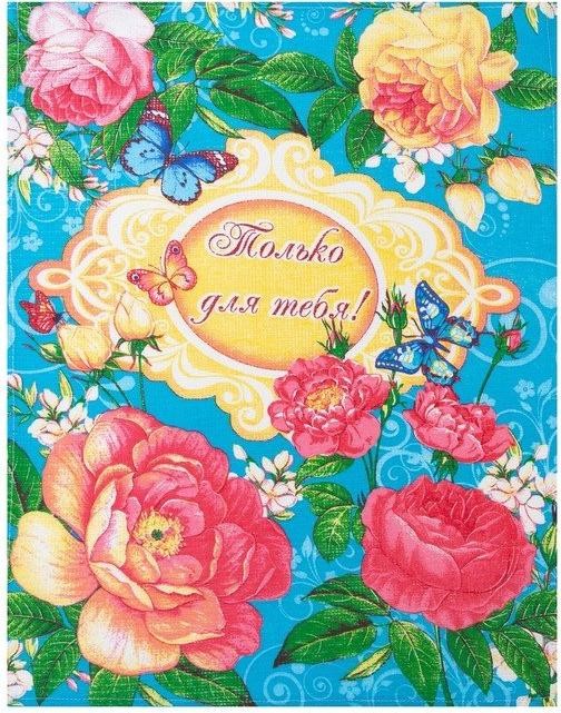 Полотенце 45×60 см, Английская роза, бирюза, вафля, 160 гр/м2, хлопок 100%