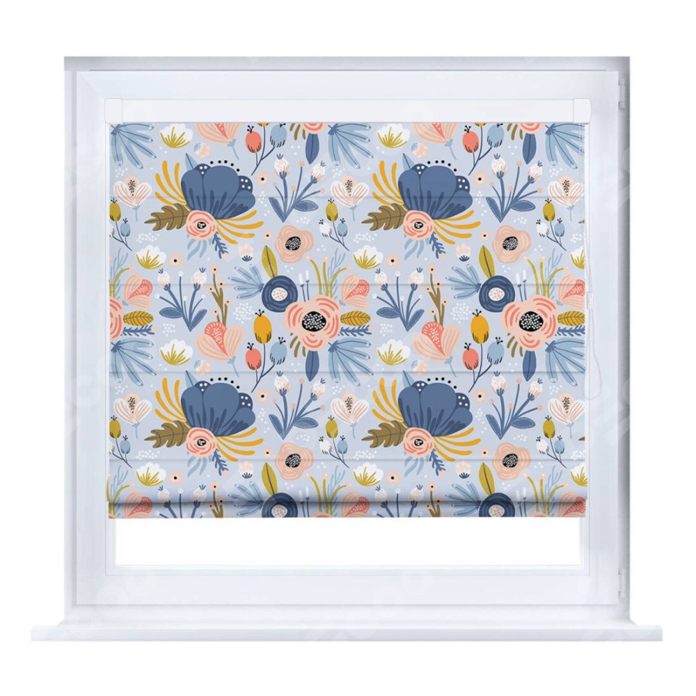 Римская штора производителя «Cortin», устанавливается на створку окна, пошита из ткани блэкаут с нанесением сублимационной печати «Волшебные цветы». Штора шьётся по индивидуальным размерам, для данного типа римской шторы возможная ширина от 35 до 150 см., высота до 250 см.