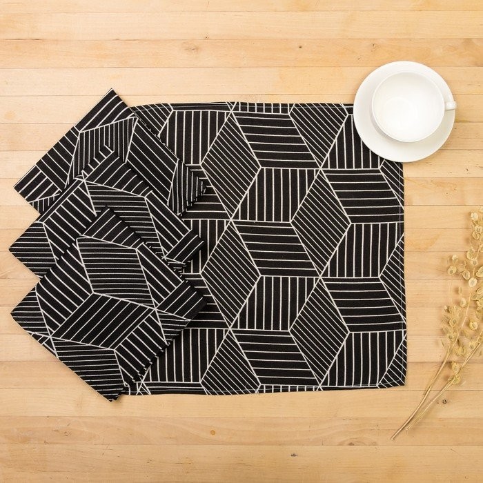 Набор декоративных салфеток Доляна 40х40см 4шт, Тренд черный, 100% пэ