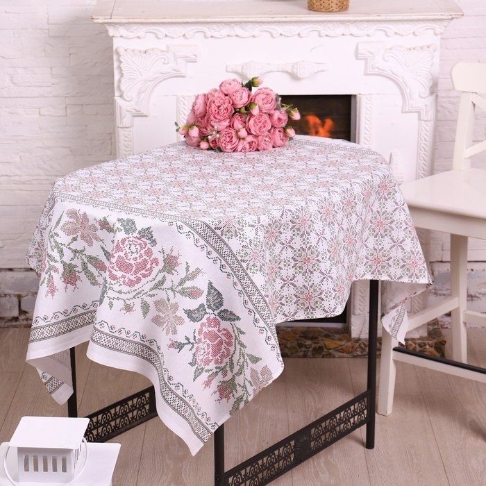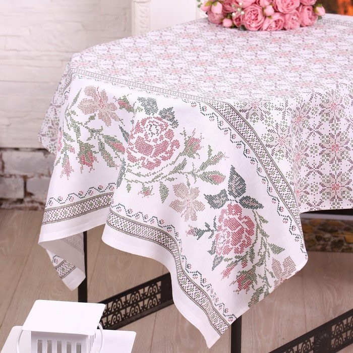 Скатерть 110×150 см «Розочки», бордо, рогожка, хл 100%