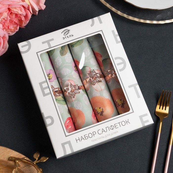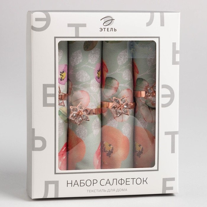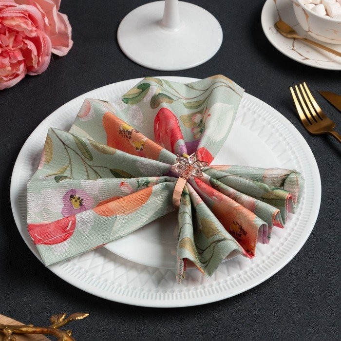 Набор салфеток с декорат. кольцами «Цветочный узор» 46х46см — 4 шт, 100% хл, саржа 190гр/м2