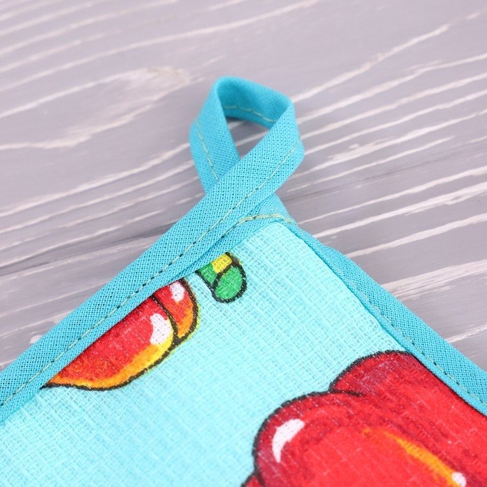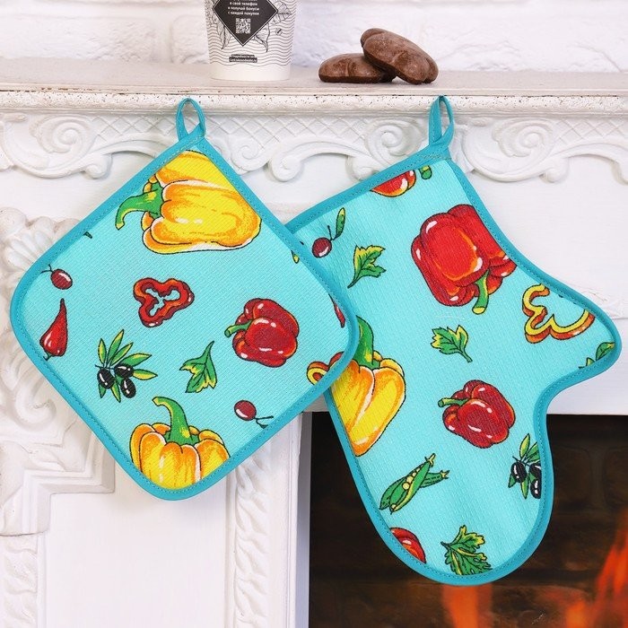 Набор кухонный Перцы 022 (варежка+прихватка), бирюзовый, хл, вафля