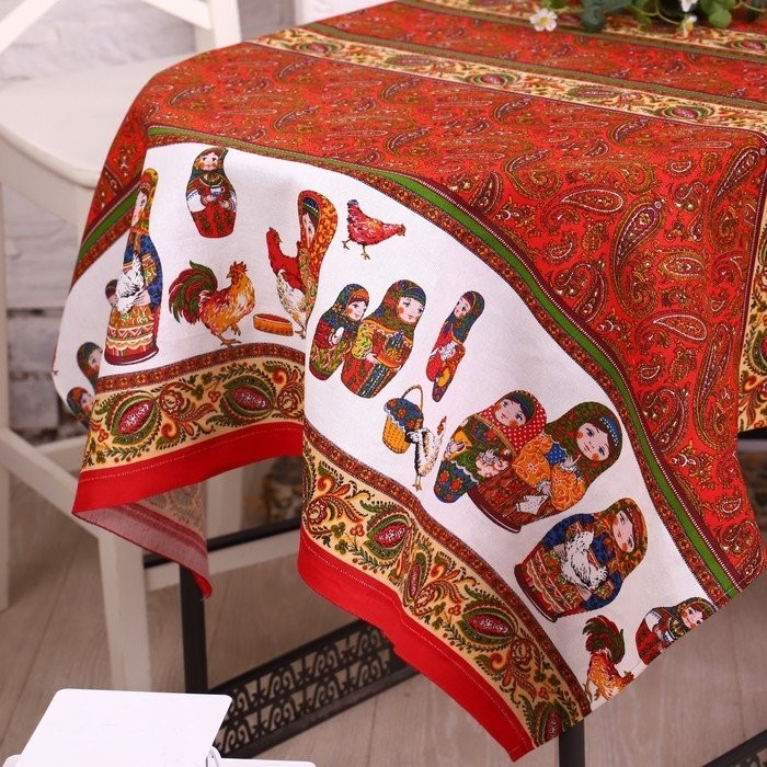 Скатерть 150×180 см «Матрешка», красный, рогожка, хл 100%