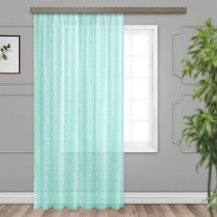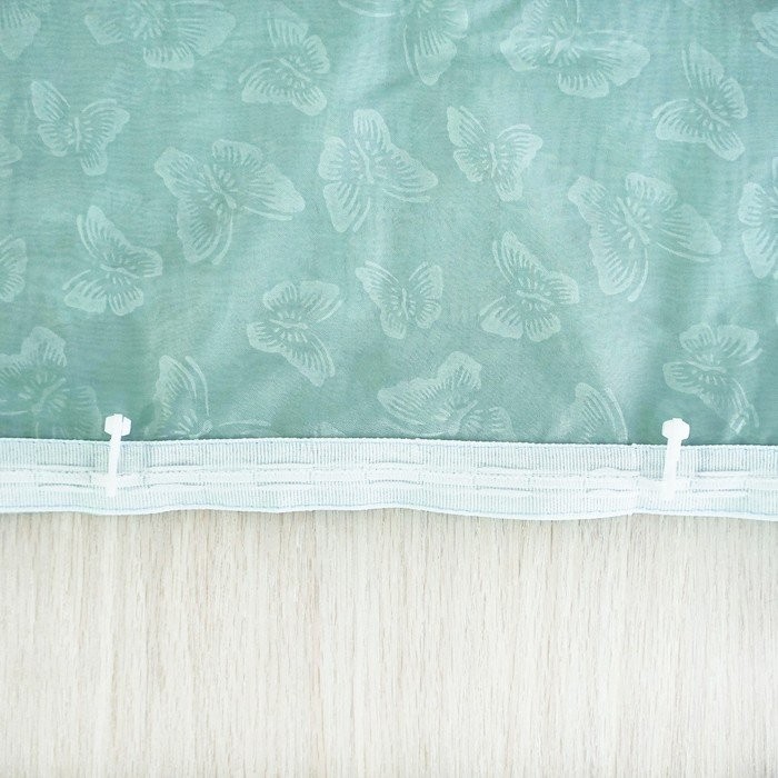 Штора тюль с тиснением бабочки 250×260 см, голубой, шторная лента, пэ