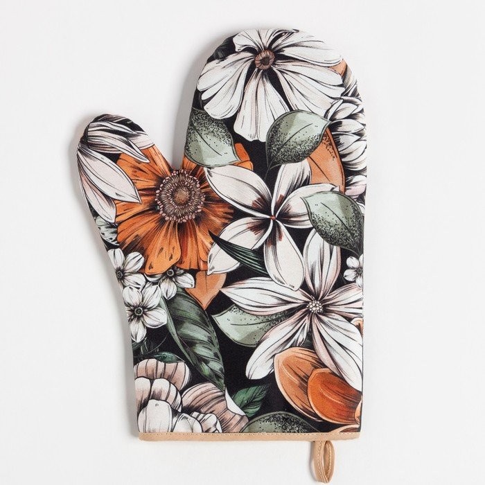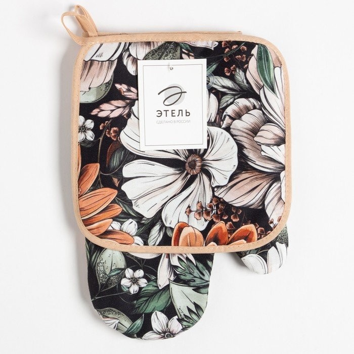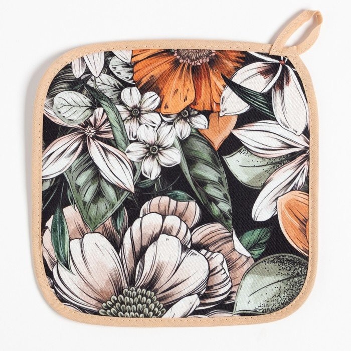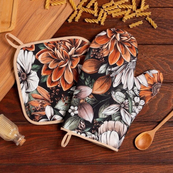 Кухонный набор Этель Meadow flower, варежка-прихватка, прихватка 19×19 см, 100% хлопок