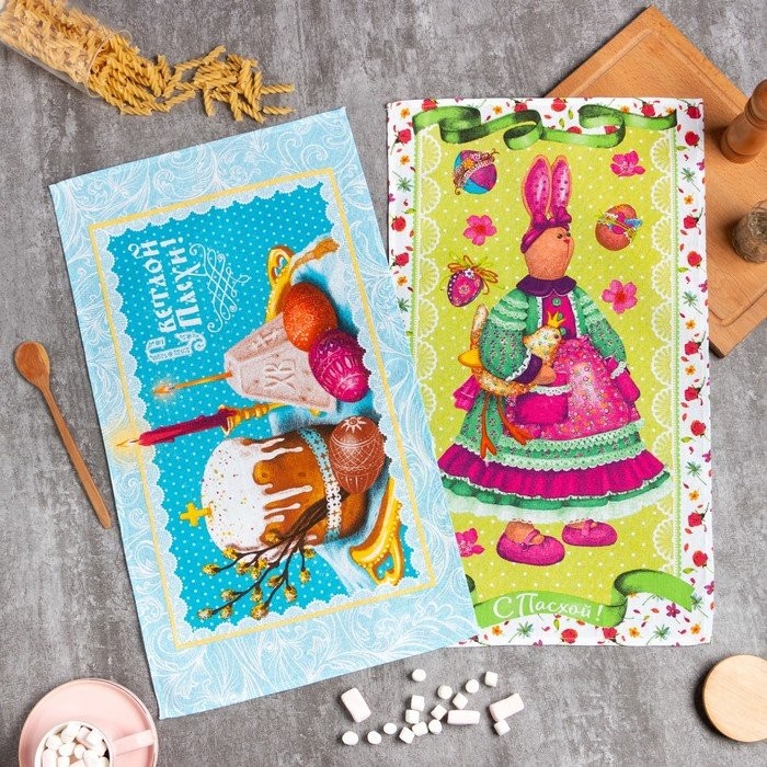 Набор кухонных полотенец Доляна «Светлой пасхи» 35х60см-2 шт