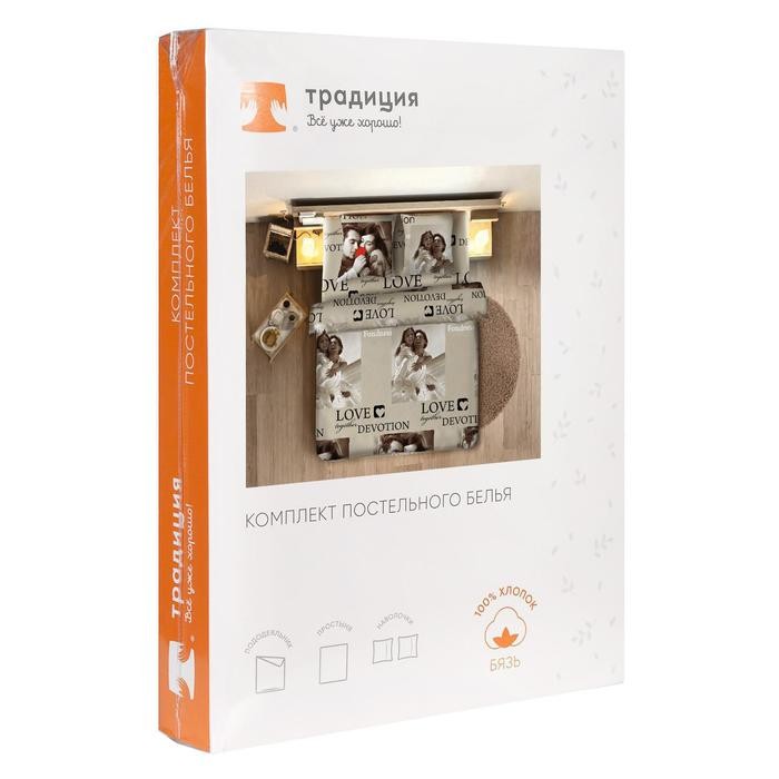 Постельное бельё «Традиция: Сладкая парочка беж», 2 сп., 175×217 см, 180×220 см, 70×70 см. 2 шт.,бязь 125 г/м, хлопок 100%