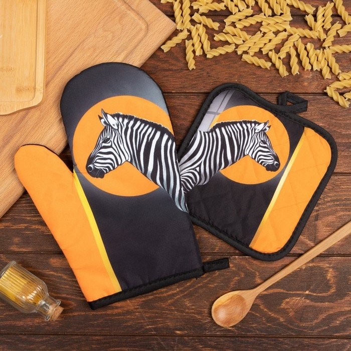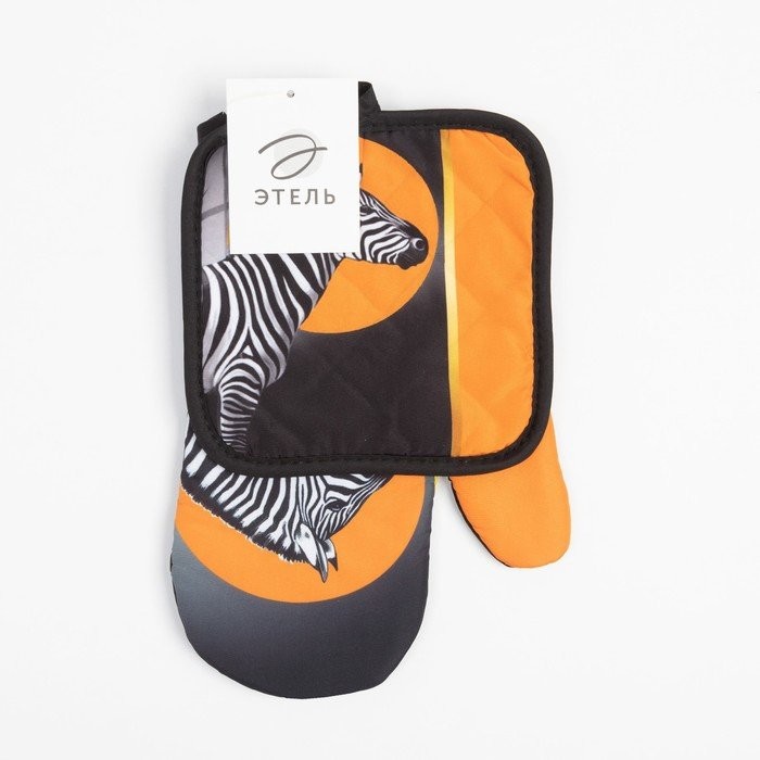 Кухонный набор (2 предмета) Этель «Зебра», прихватка 17×17 см, варежка 26×16 см, 100% п/э