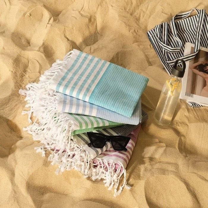 Пештемаль для пляжа, бани, сауны Waffle 100×180 см, салатовый