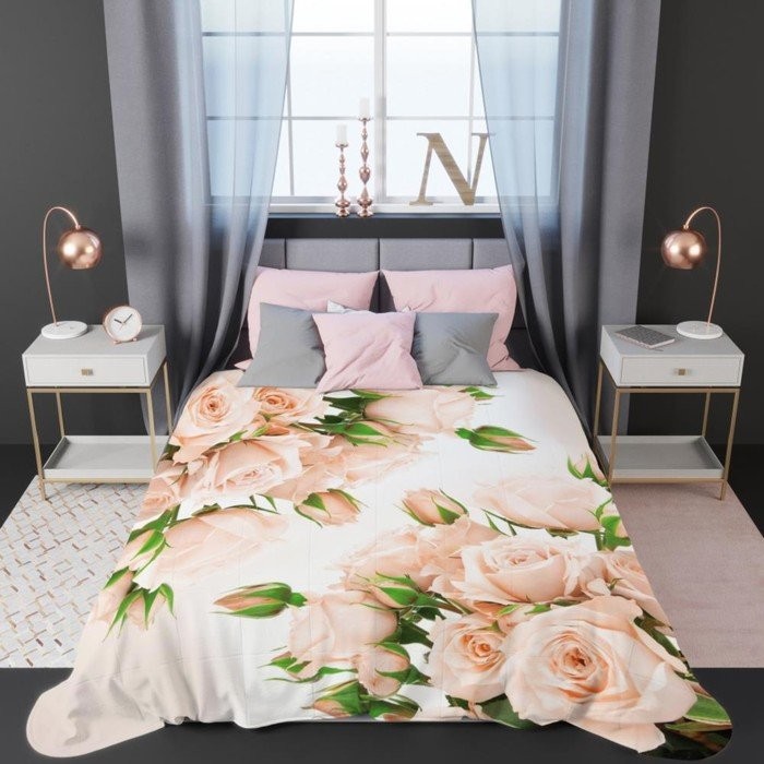 Покрывало стеганое «Розы и графический узор», размер 200×220 см