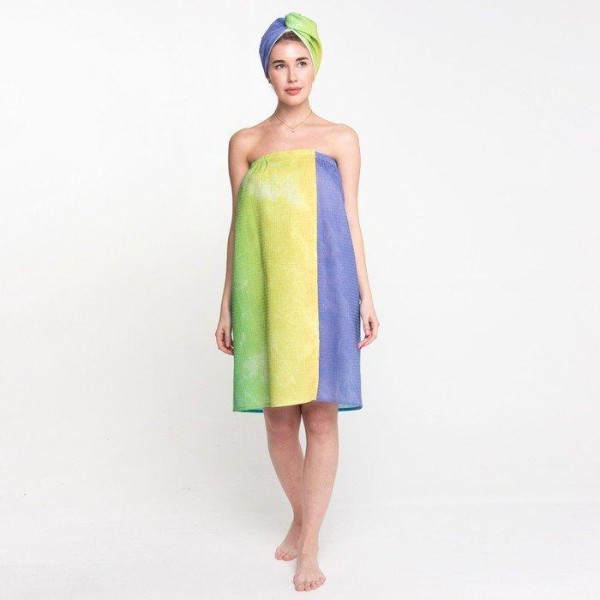 Набор для сауны Экономь и Я «Радуга» (полотенце-парео + чалма) 100%хл, 200 г/м2
