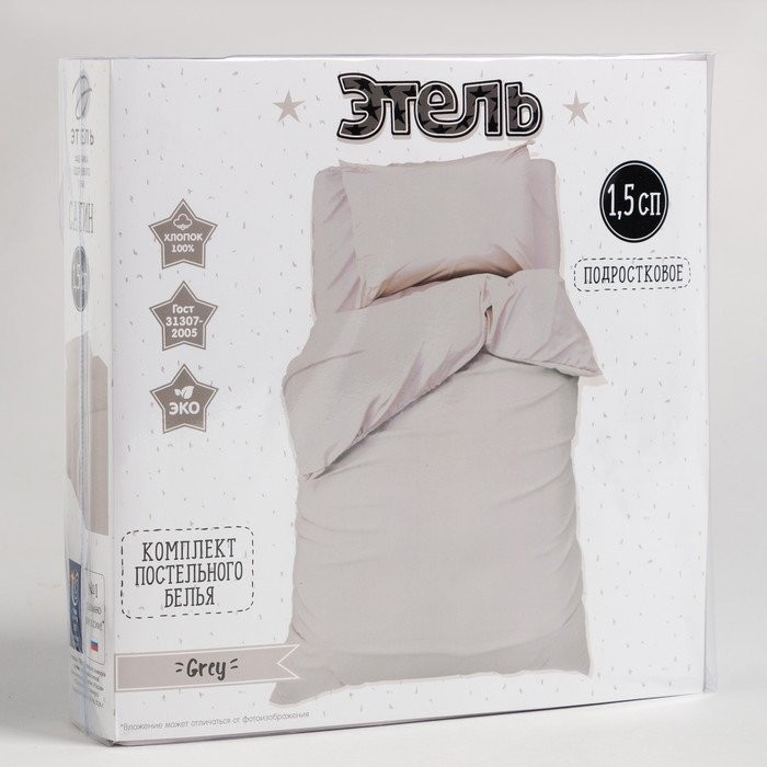 Постельное бельё Этель 1,5 сп «Grey» 143×215 см, 150×214 см, 50×70 см -1 шт, 100% хлопок, сатин