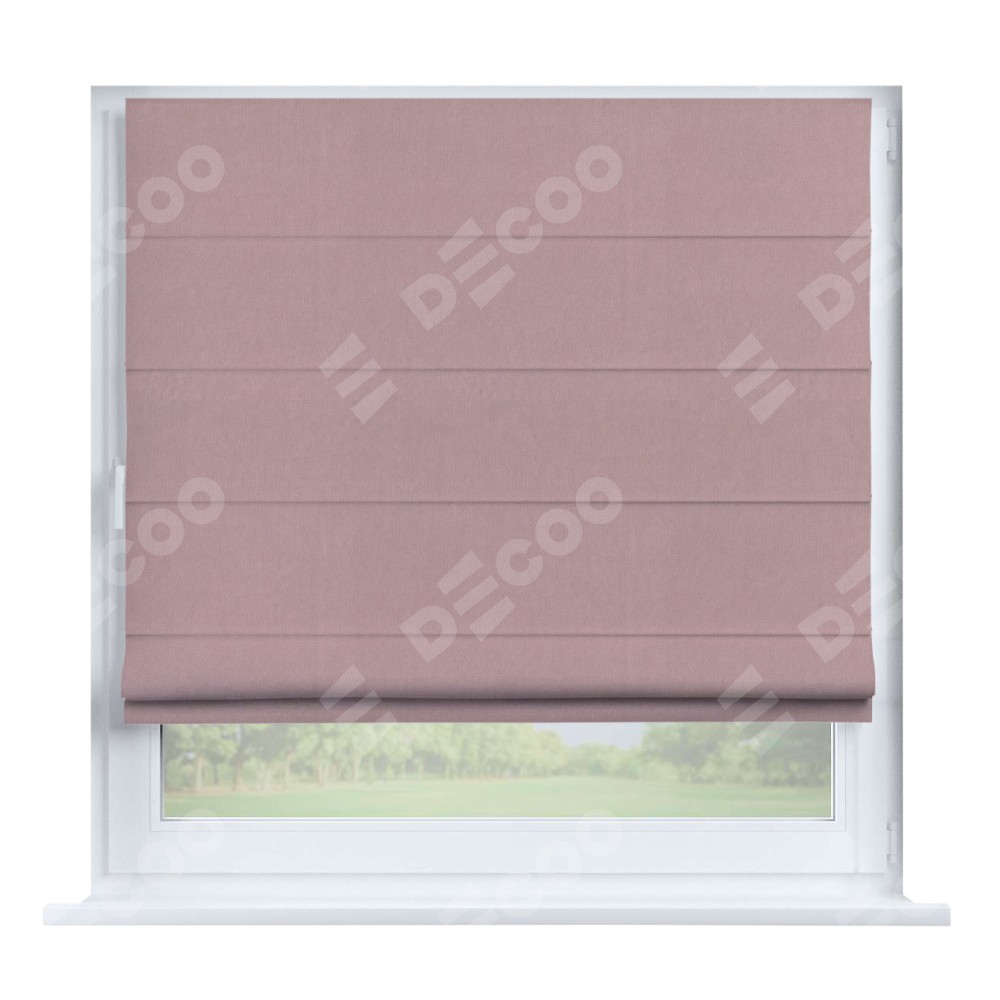 Римская штора производителя «Cortin», устанавливается на створку окна, пошита из ткани вельвет розовая пудра, артикул 14132. Штора шьётся по индивидуальным размерам, для данного типа римской шторы возможная ширина от 35 до 150 см., высота до 250 см.