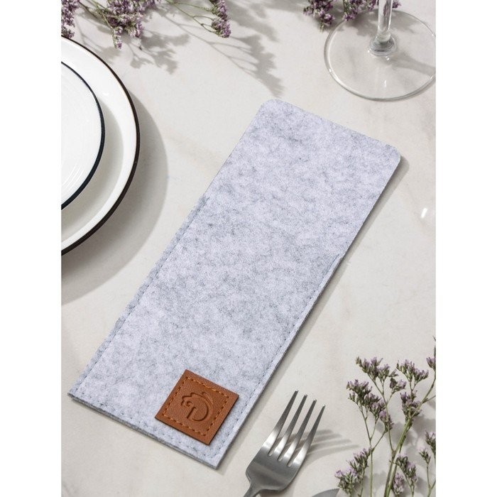 Конверт для столовых приборов Доляна «Грэй», 25×10 см, толщина 2 мм, цвет светло-серый