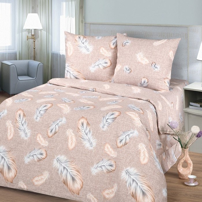 Постельное бельё евро Миланика Перья 200х217см, 217×240 см, 70х70см 2 шт, бязь 125г/м, хлопок 100%
