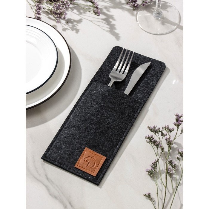 Конверт для столовых приборов Доляна «Грэй», 25×10 см, толщина 2 мм, цвет чёрный