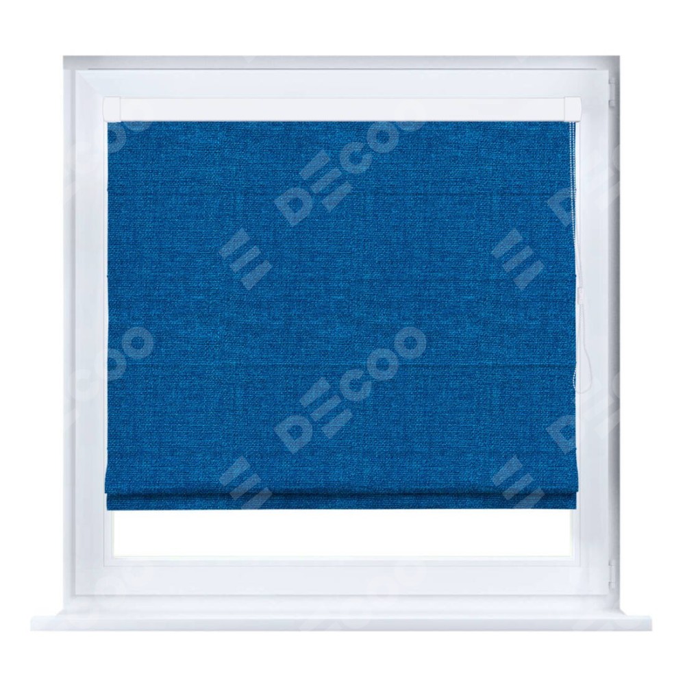 Римская штора производителя «Cortin», устанавливается на створку окна, пошита из ткани лён синий, артикул 63742. Штора шьётся по индивидуальным размерам, для данного типа римской шторы возможная ширина от 35 до 150 см., высота до 250 см.