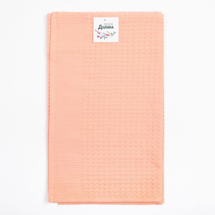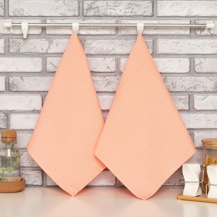 Набор кухонных полотенец Доляна, цвет коралловый, 35х60см-2шт, 100% хл, вафля, 220 гр/м2
