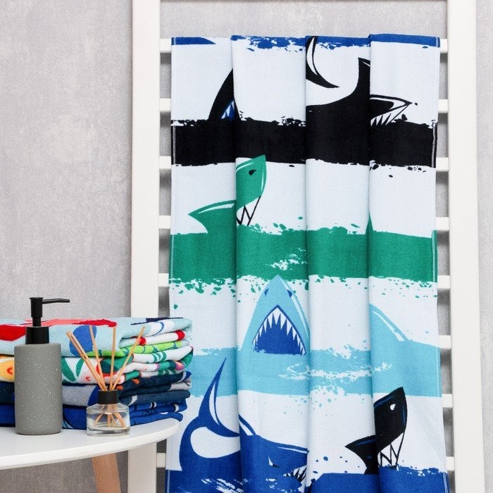 Полотенце Love Life «Акулы» 70*140 см, велюр/махра 340гр/м2, 100% хлопок