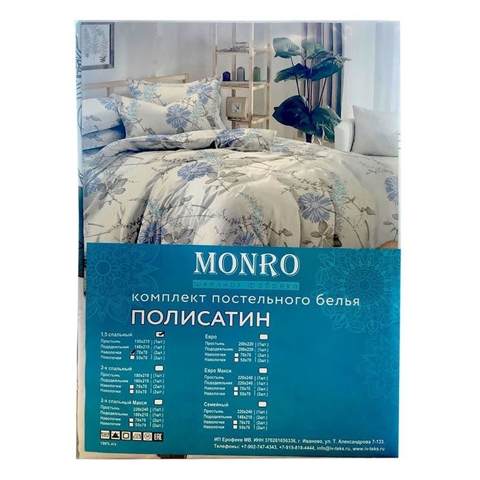Постельное бельё Monro 2сп, 180×210, 180×210, 70х70см 2шт полисатин 80г/м, пэ100%