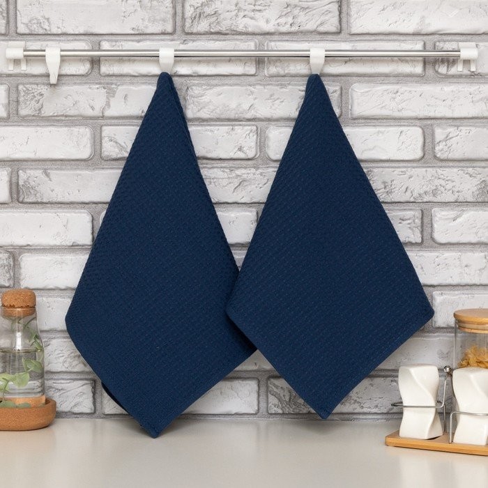 Набор Кухонныйполотенец Доляна, цвет индиго, 35х60см-2шт., 100% хл, вафля, 220 гр/м2