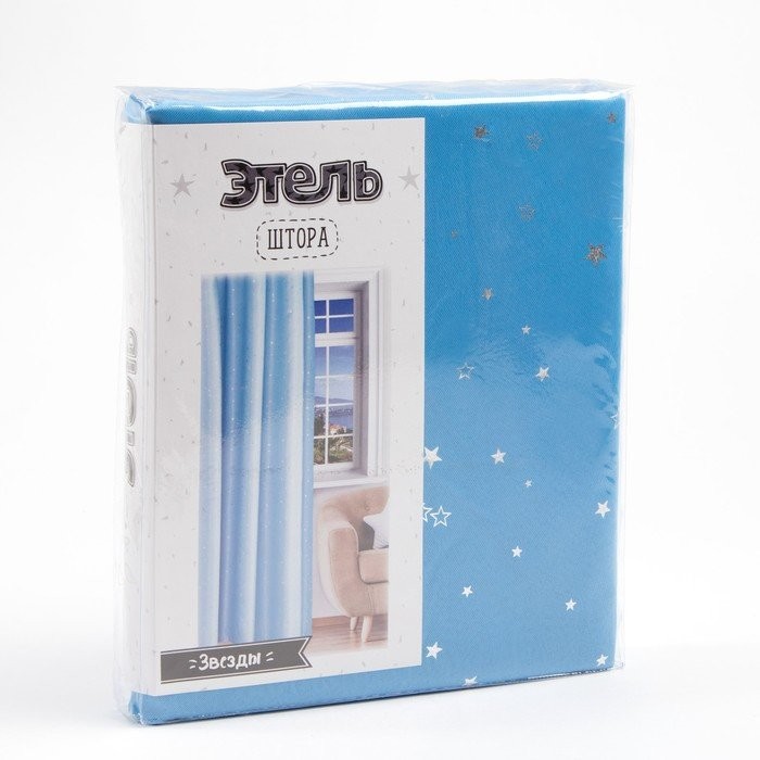 Портьера Этель «Звезды» без держателя, цвет голубой, 110×260 см, блэкаут, 100% полиэстер