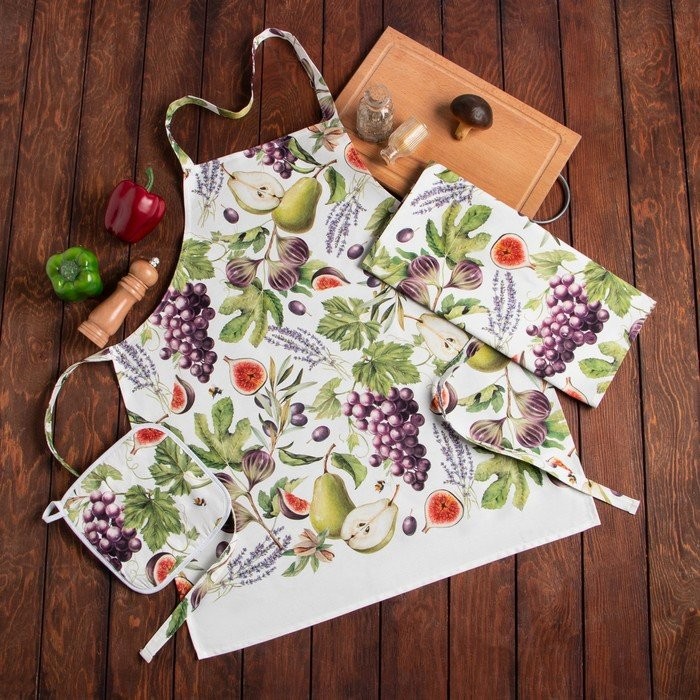 Кухонный набор Этель «Фруктовый сад», полотенце 40×73 см, прихватка 19×19 см, фартук 60×65 см