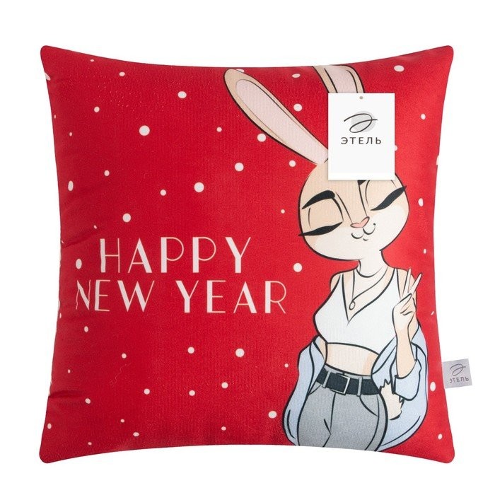 Подушка декоративная «Happy new year», 40*40 см, 100% п/э, велюр