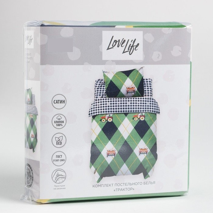 Постельное бельё 1.5сп LoveLife «Трактор» 143×215 см, 150×225 см, 50×70 см-1 шт, 125г/м2 сатин
