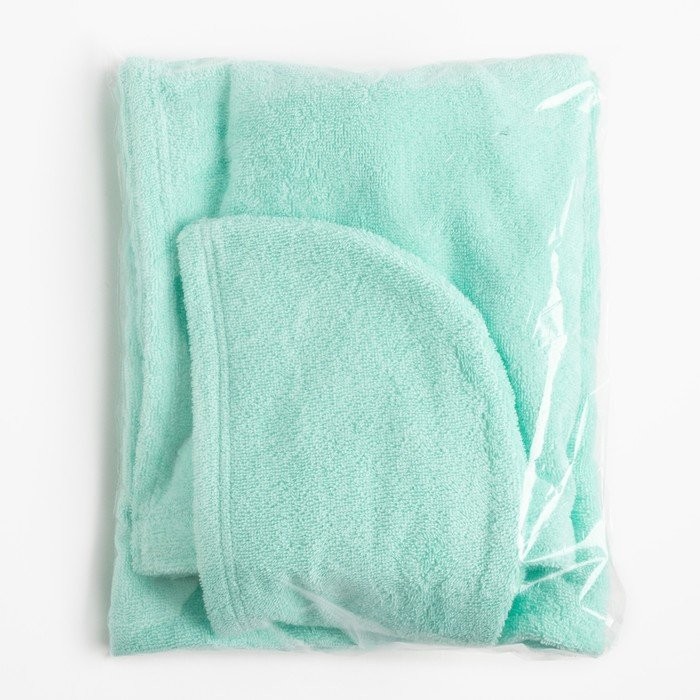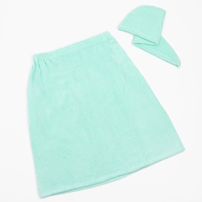 Набор для сауны Экономь и Я: полотенце-парео 68*150см + чалма, цв.св-бирюзовый,100%хл,320 г/м2
