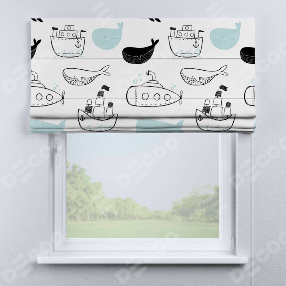 Римская штора производителя «Cortin», используется для проёма, пошита из ткани блэкаут с нанесением сублимационной печати «Морская прогулка». Имеет универсальный механизм и подходит для монтажа: на потолок, на стену и в нишу.