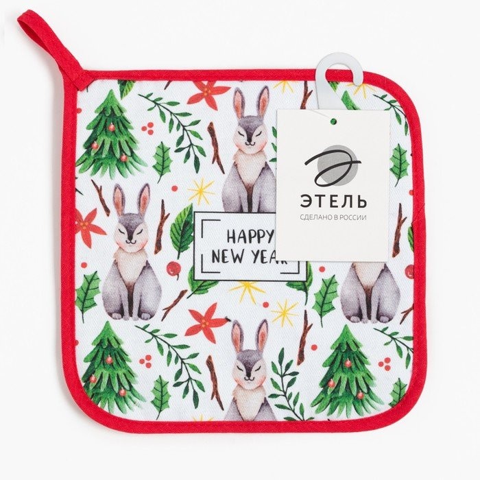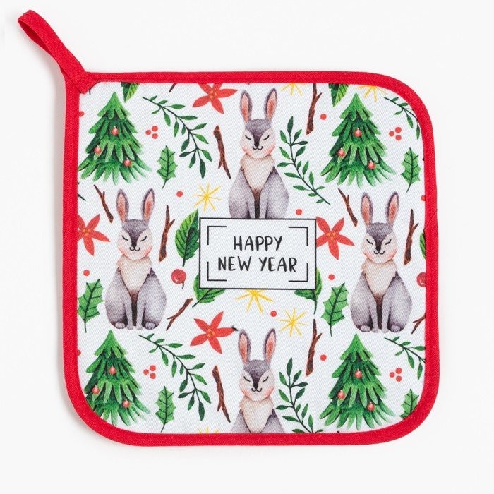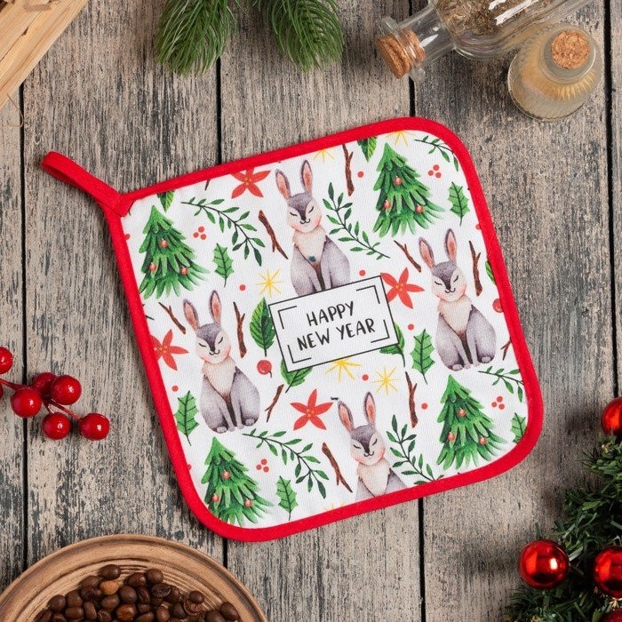 Прихватка «Happy New Year» 19×19 см, саржа, 100% х/л, ватин 250 г/м2