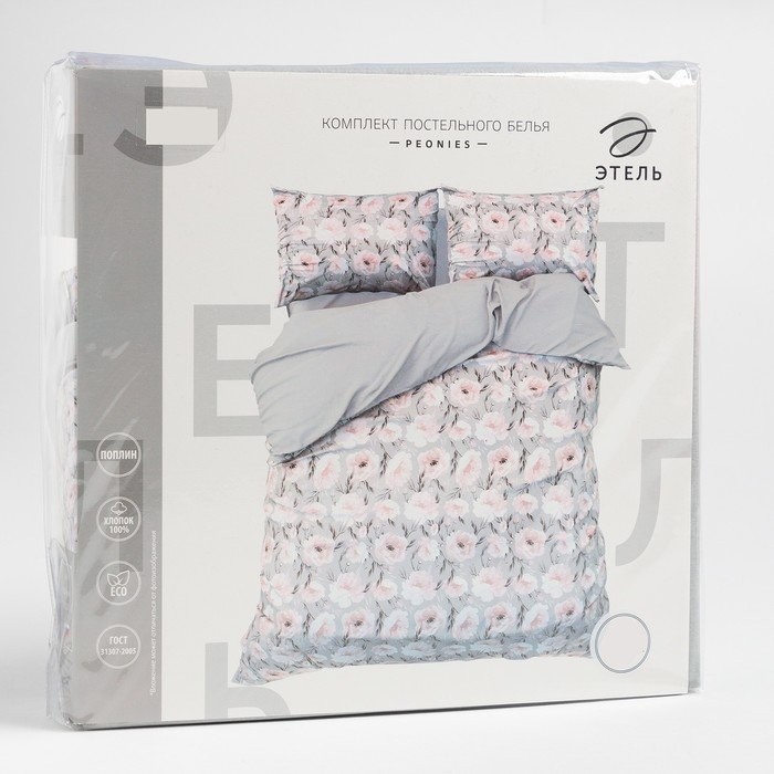 Постельное бельё Этель Евро Peonies 200×217 см, 220×240 см, 50×70 см-2 шт, поплин,125 г/м2