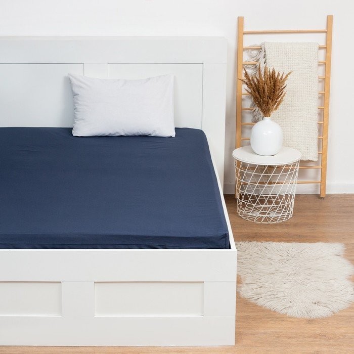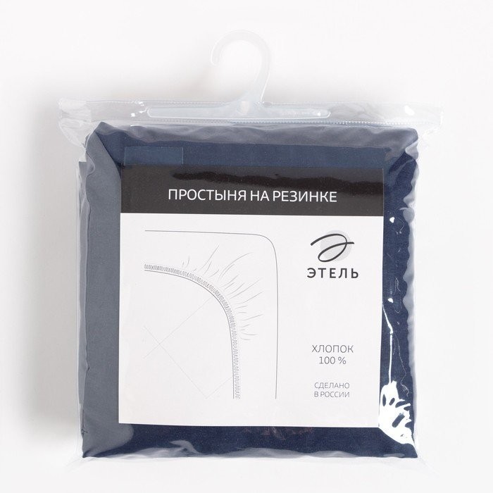 Простыня на резинке Этель, 160*200 + 25 см, синий, 100% хлопок, бязь