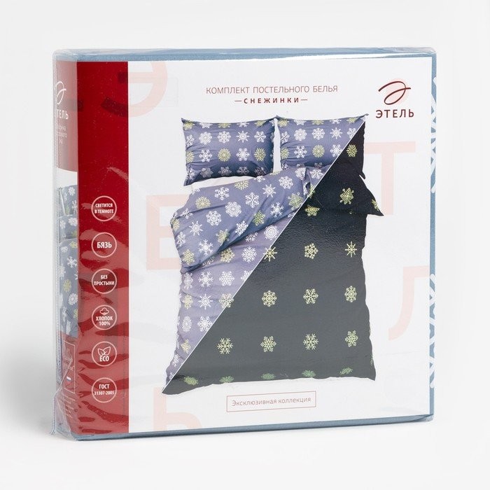 Комплект: пододеяльник и 2 наволочки «Снежинки» 200×215 см, 50×70 см — 2 шт, 100% хлопок
