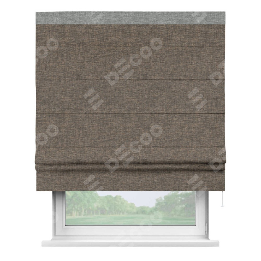 Римская штора «Кортин» с кантом Кинг, для проема, ткань рогожка димаут, коричневый