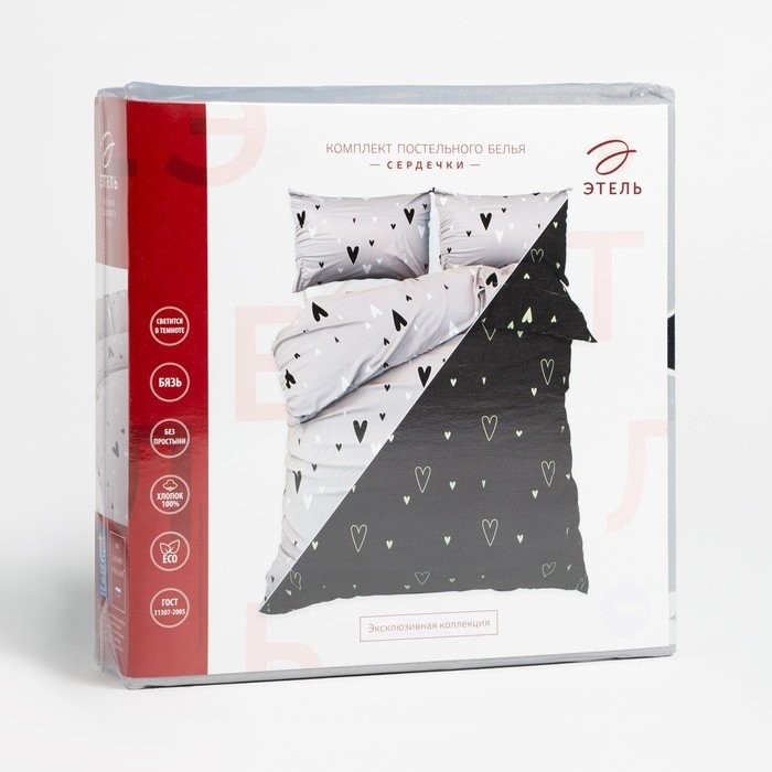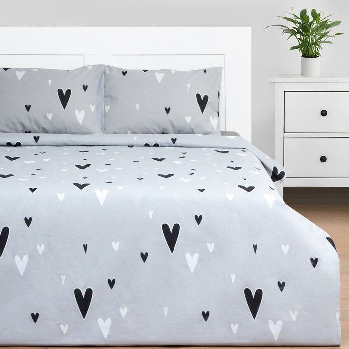 Комплект: пододеяльник и 2 наволочки «Сердечки» 200×215 см, 50×70 см — 2 шт, 100% хлопок
