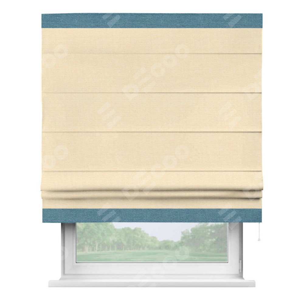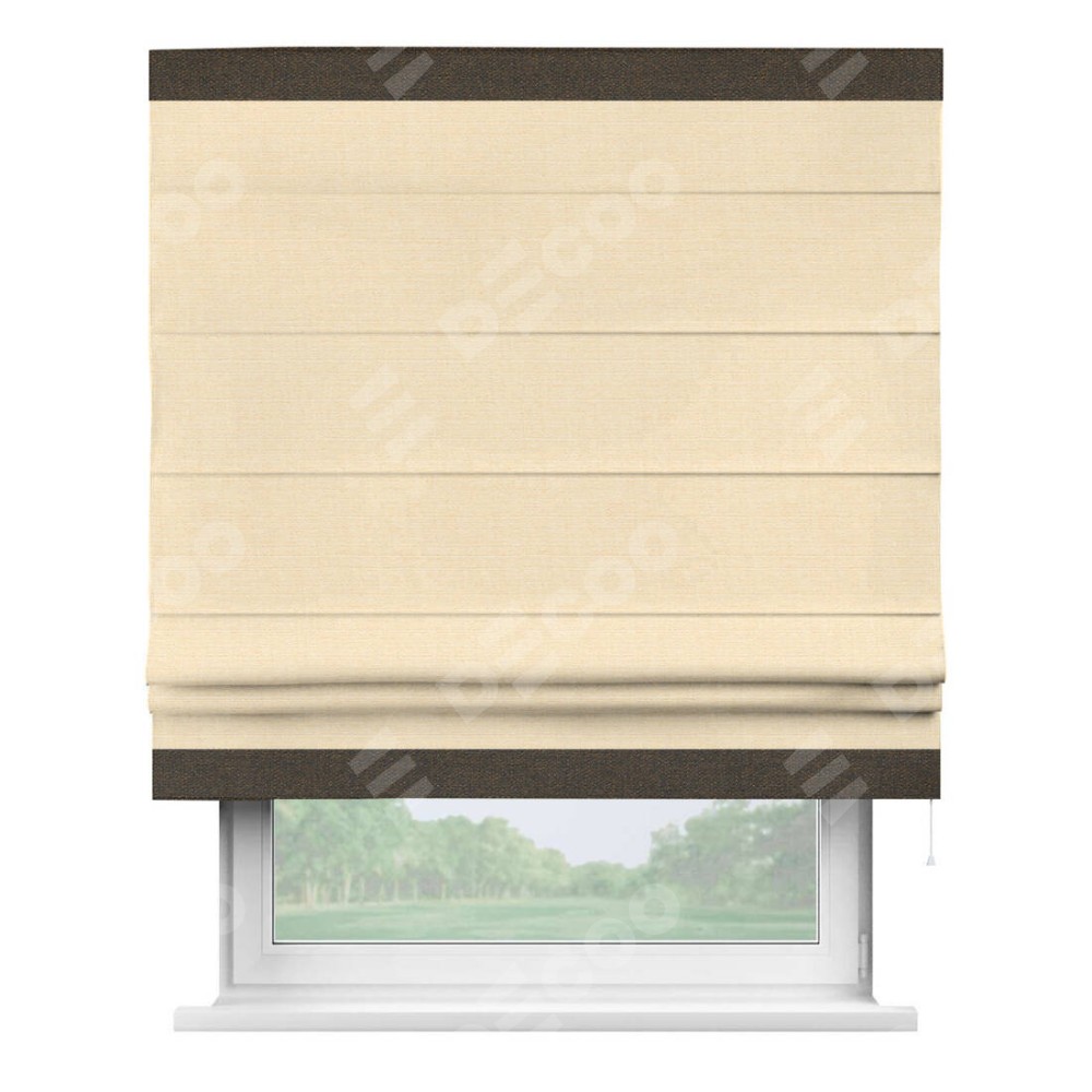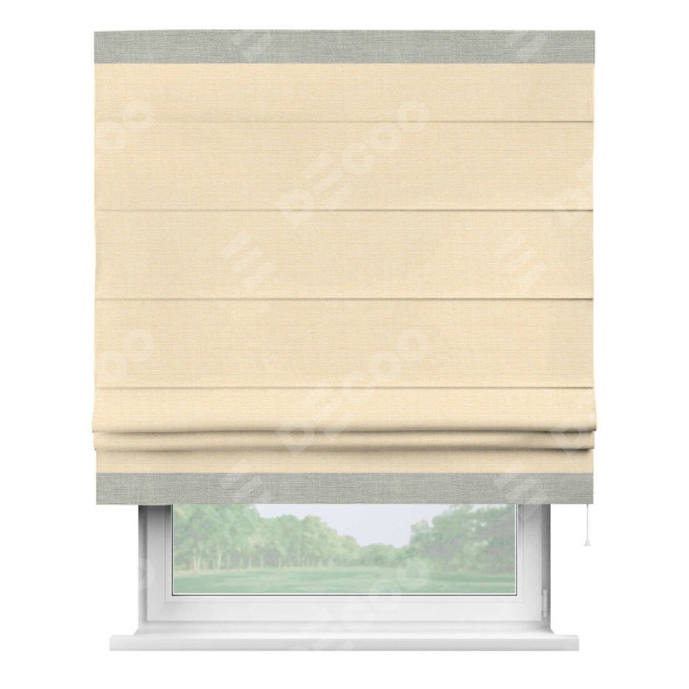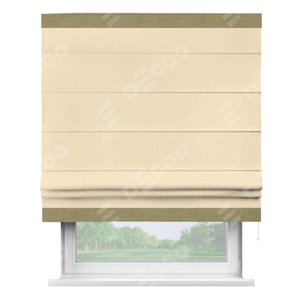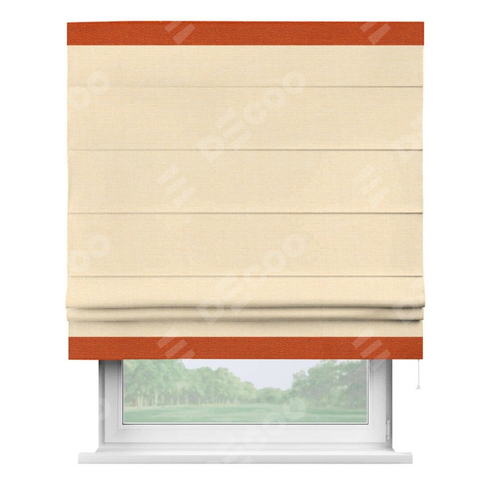 Римская штора «Кортин» выполнена в отделке кантом Горизонт, для проема, ткань лён бежевый
