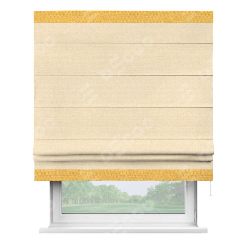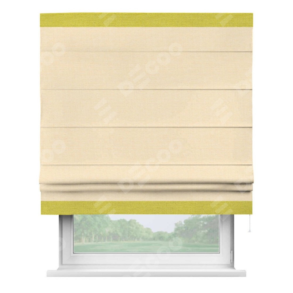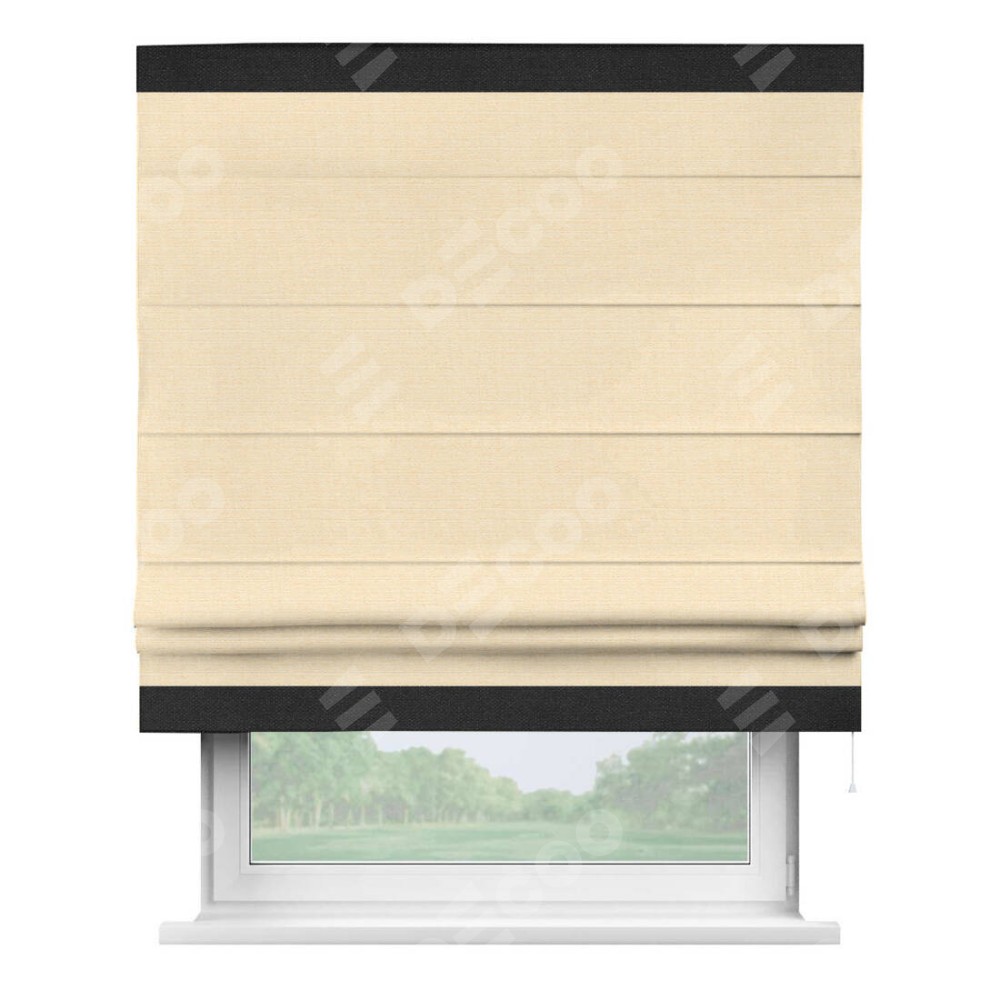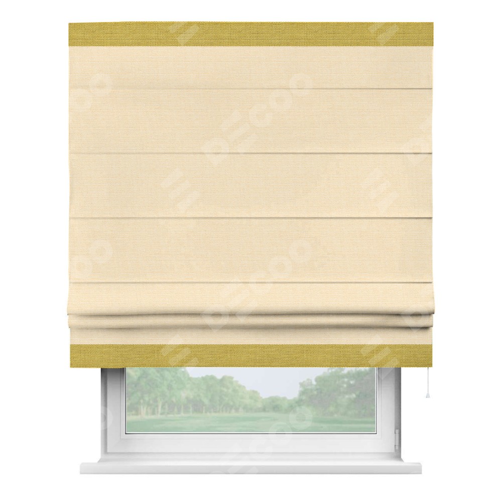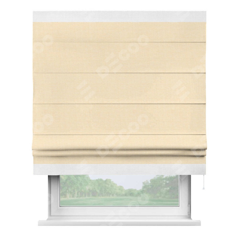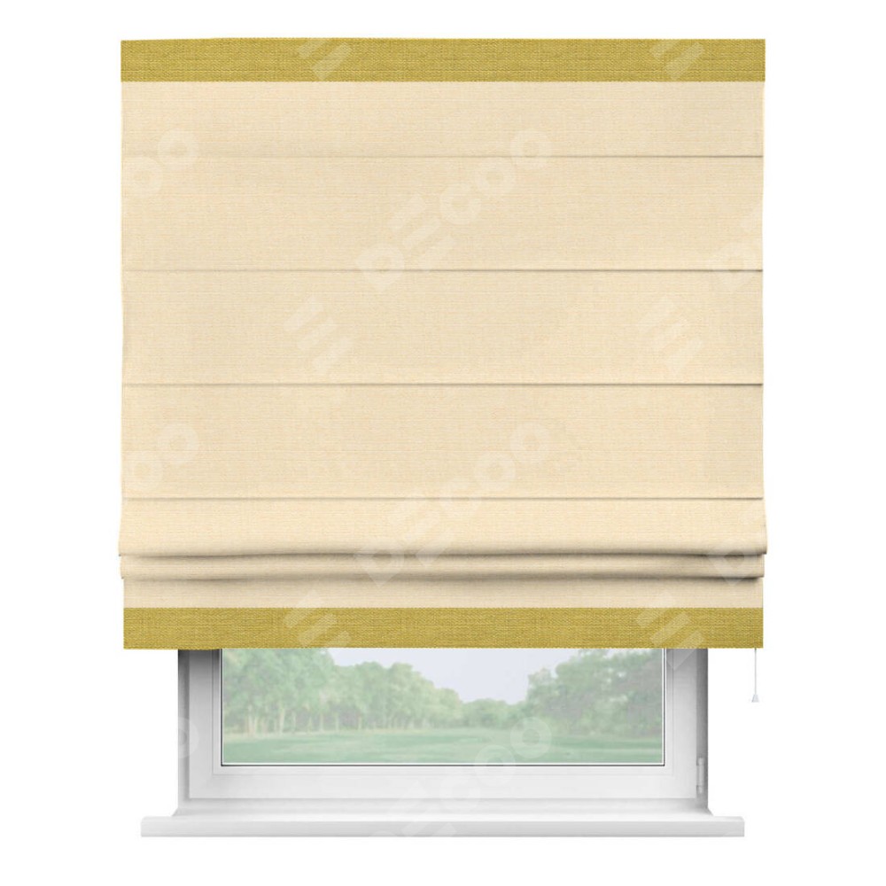 Римская штора «Кортин» выполнена в отделке кантом Горизонт, для проема, ткань лён бежевый