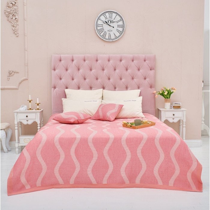 Покрывало хлопковое Этель «Волны» 200×240 см, цвет розовый, 100% хлопок, 300гр/м2