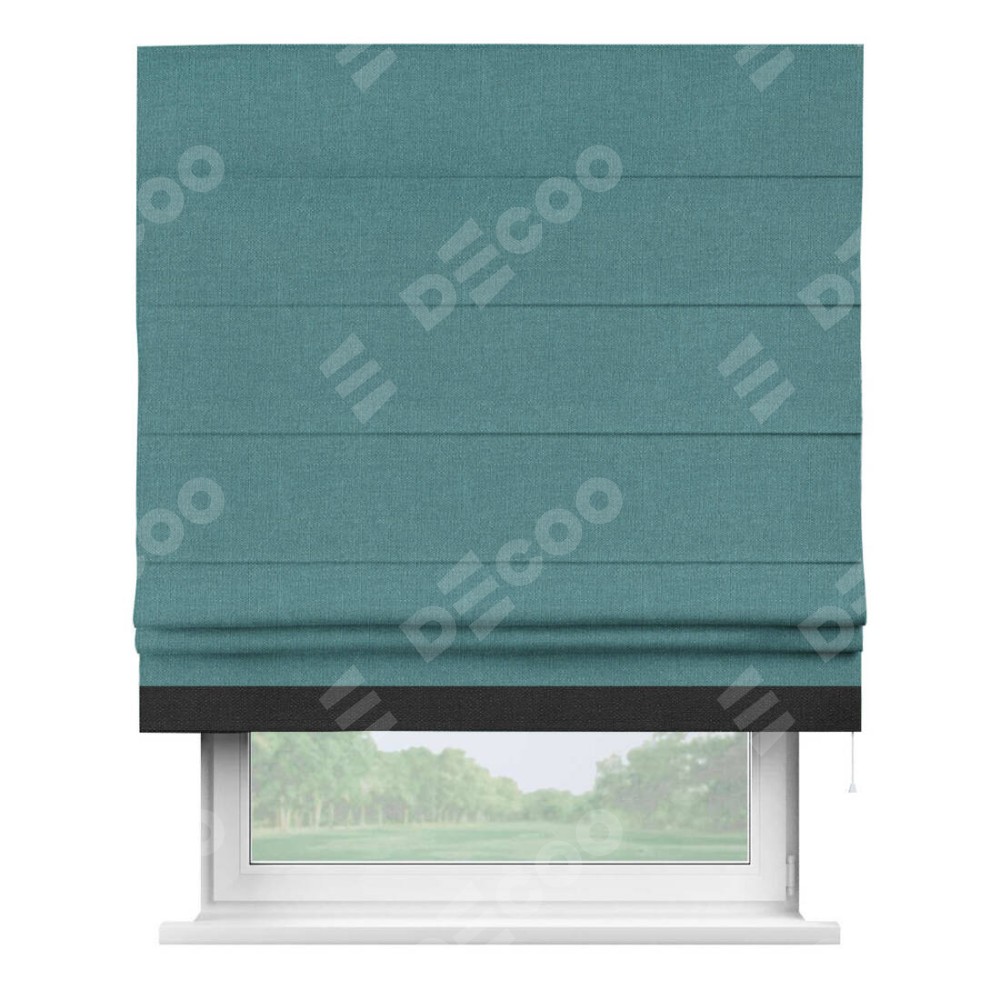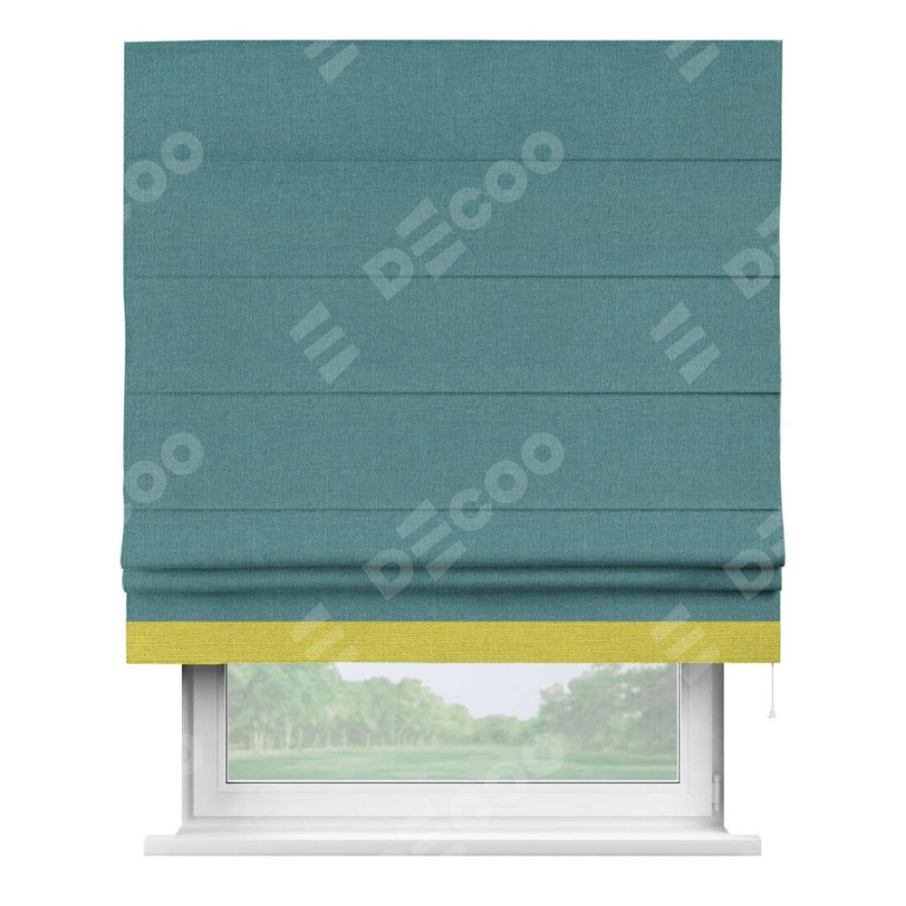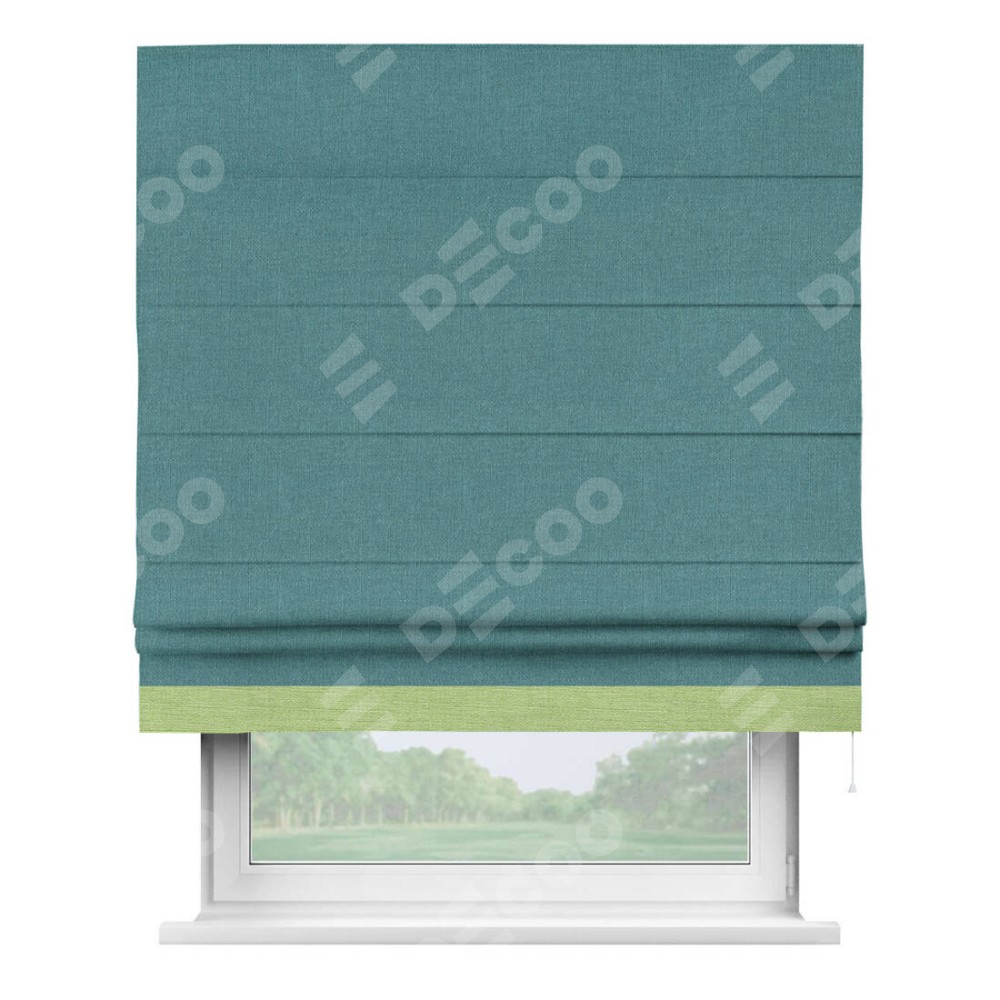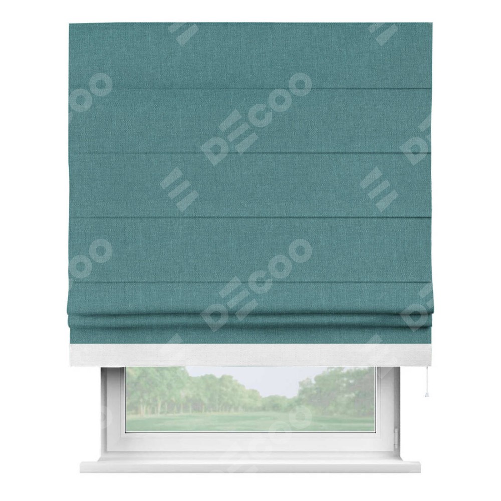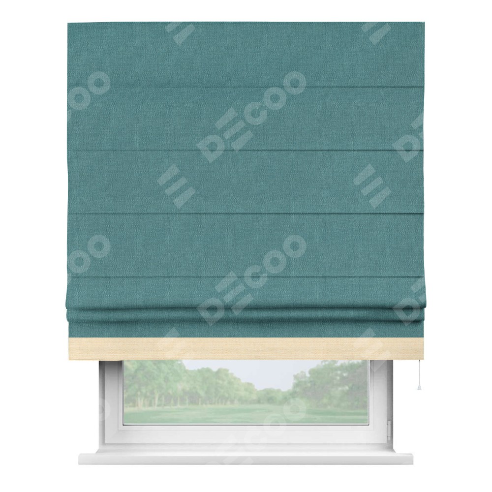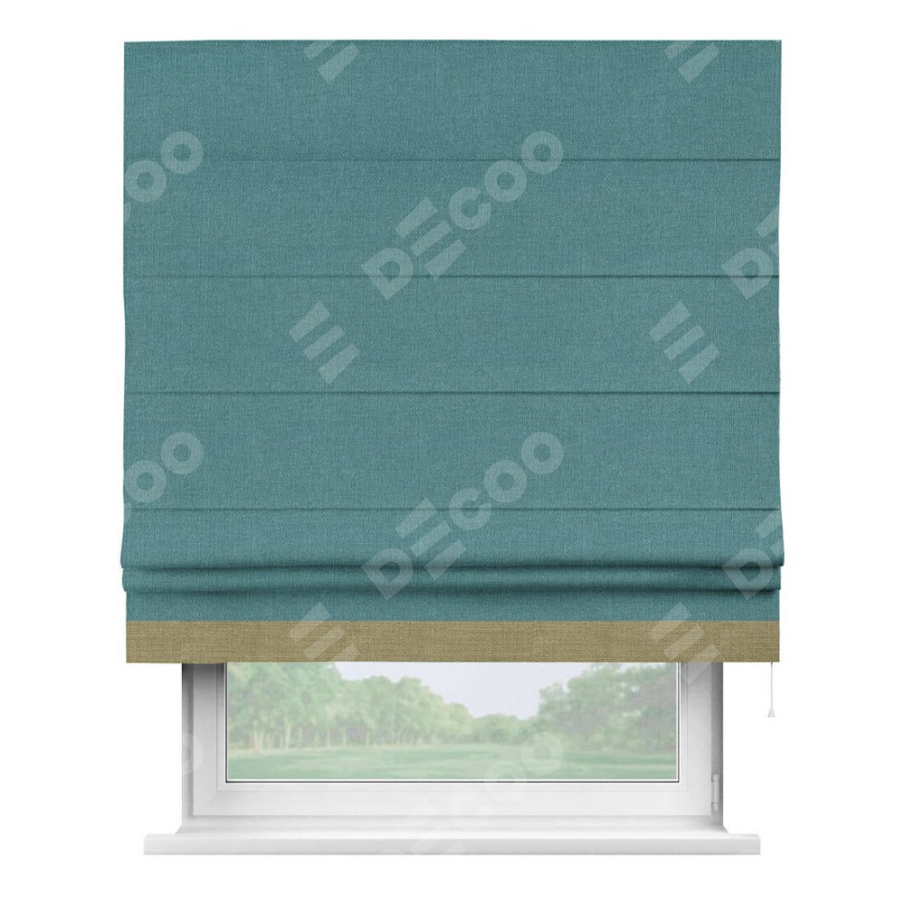 Римская штора «Кортин» с кантом Джестер, для проема, ткань лён бирюзовый