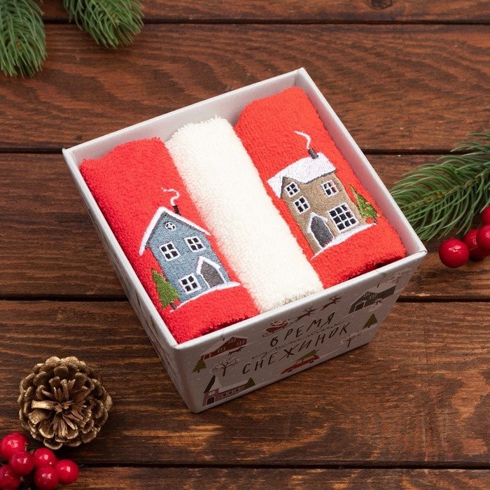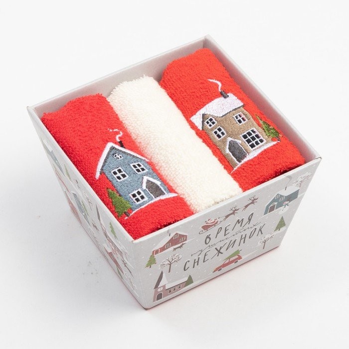 Набор полотенец «Время снежинок» 30×30 см-3шт, 100% хлопок 340 г/м2